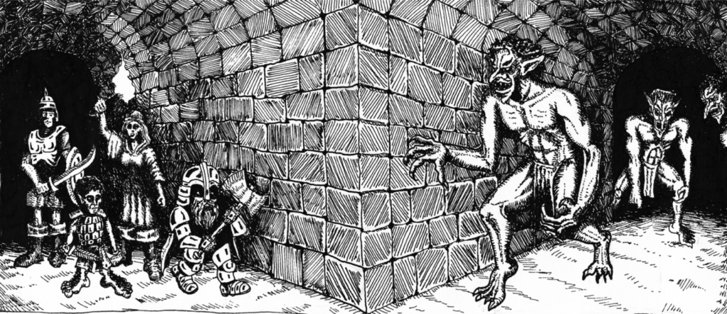 The other side of the coin of the trap. Tricks are, as the name implies, to trick or subvert the expectation of what the players believe was going to happen. It doesn’t have to be a surprise, sometimes it can be obvious that the trick is a trick, for example magical pools that have an effect after drinking it. They don’t know what will happen or what they think could happen doesn’t happen. Tricks can add the weirdness to your games, playing around with magical effects mess with the architecture of the dungeon, riddles, and puzzles can qualify here as well. Create a list of these tricks to go along with the theme of the dungeon.